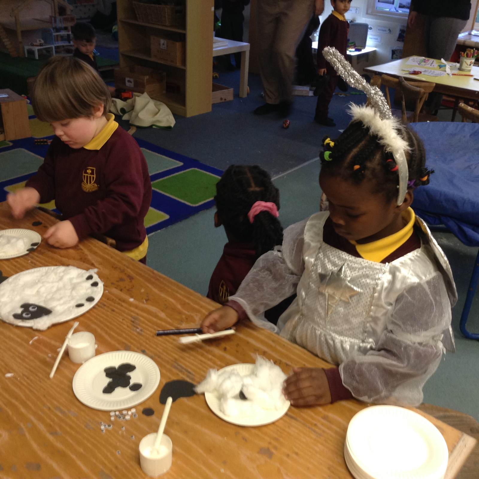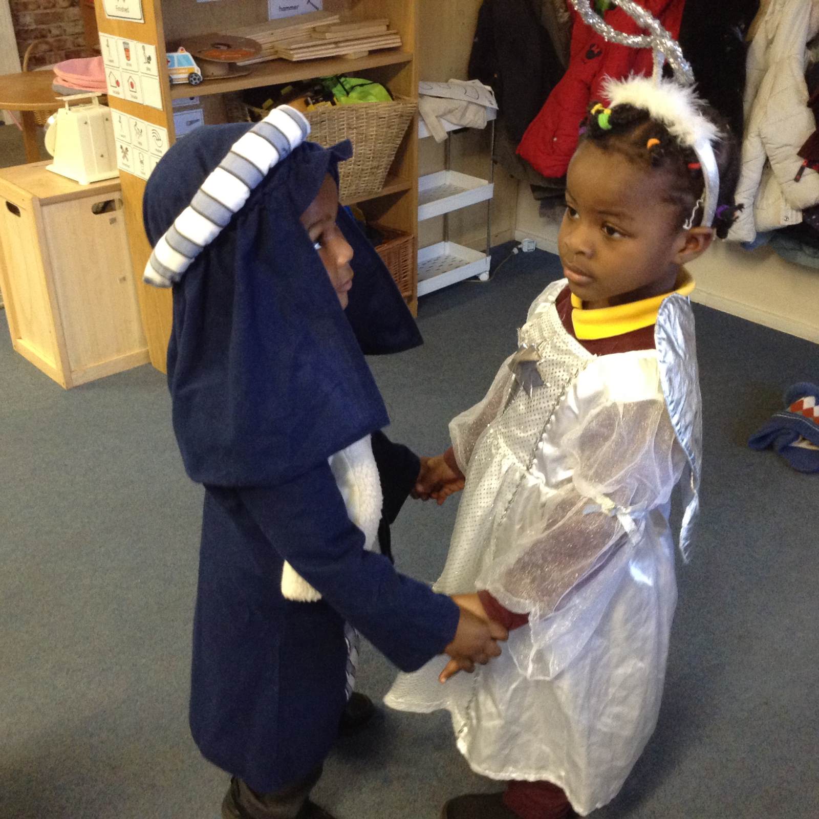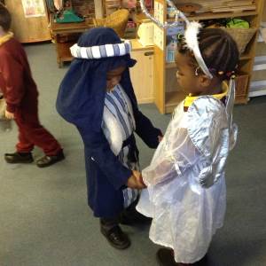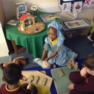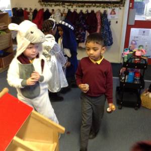 This week we continued hearing the story of Jesus being born. We recapped the story so far and then up until the shepherds were told by Angels that Jesus had been born. The children created sheep for the shepherds in the story and dressed up to retell the story as Mary and Joseph with Angel Gabriel and then onto the shepherds coming to see the new born baby Jesus.
