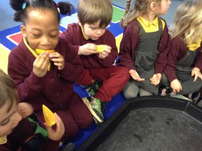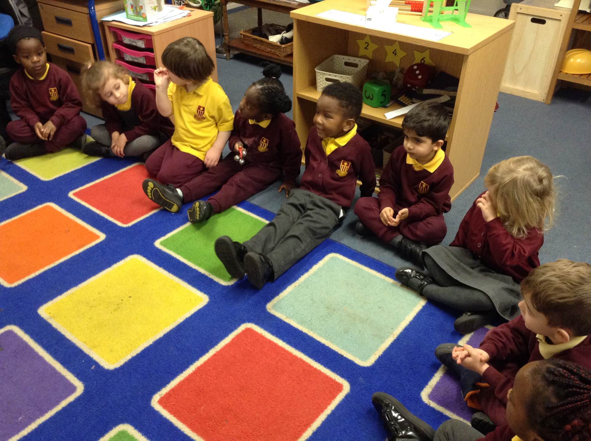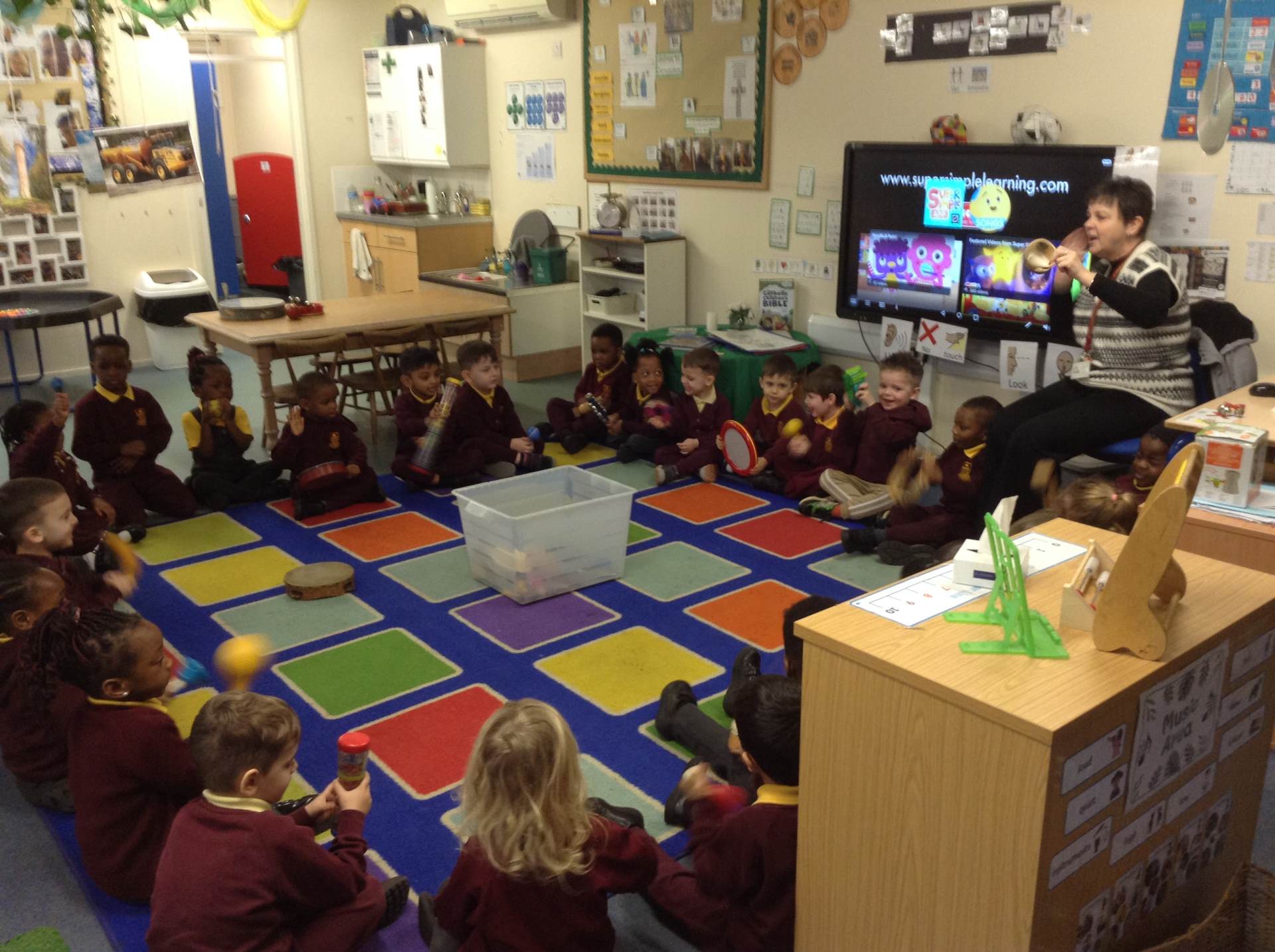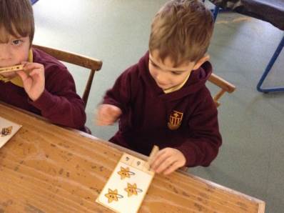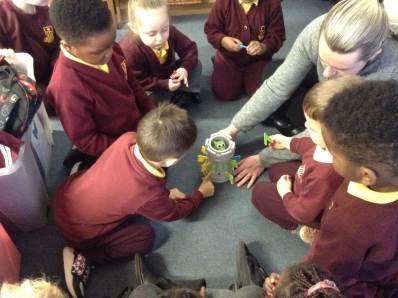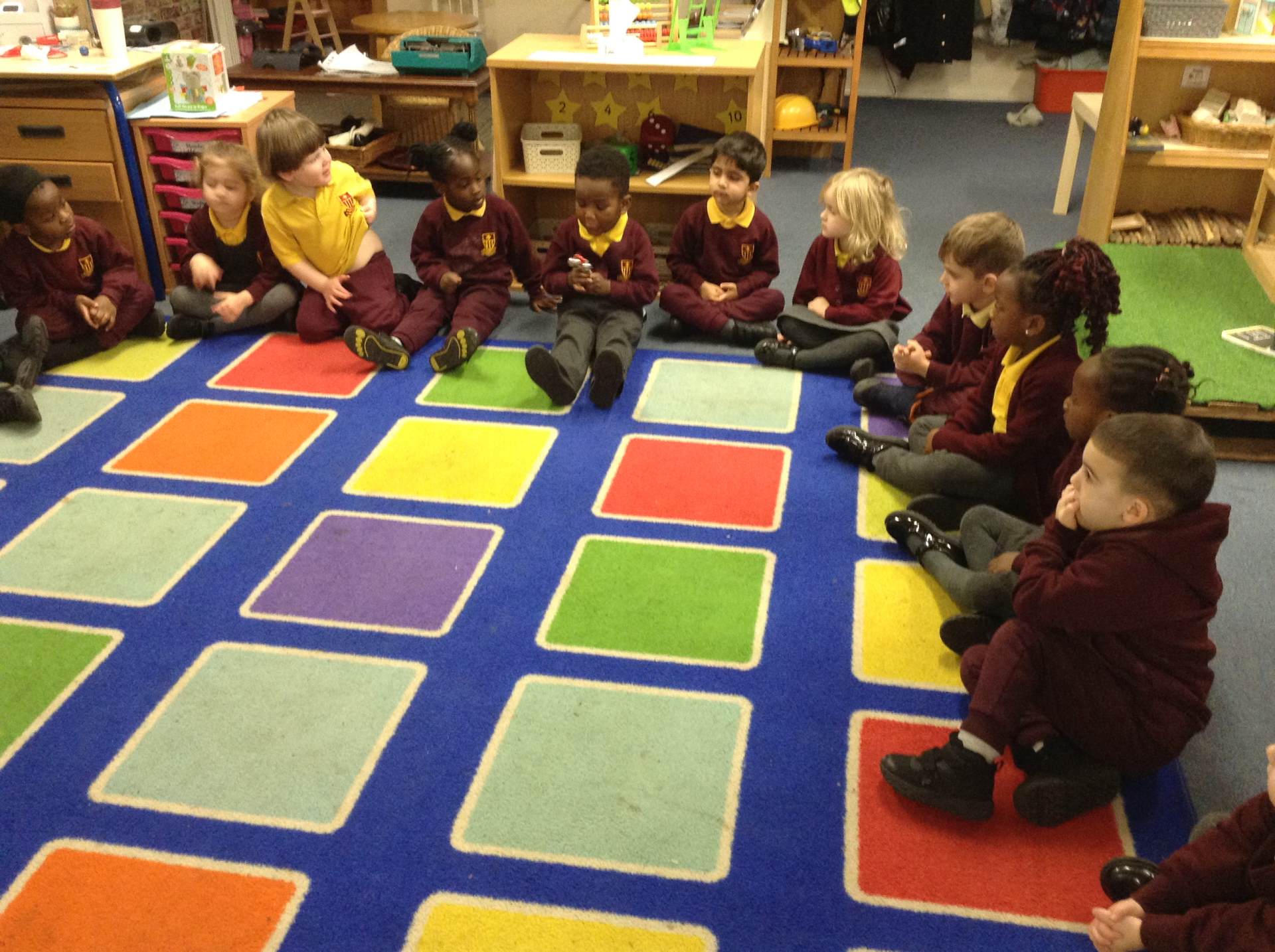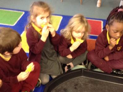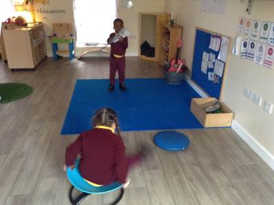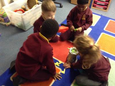 In phonics the children had a go at passing round an instrument without making a sound. They then had a go at playing an instrument in a beat alongside a song.