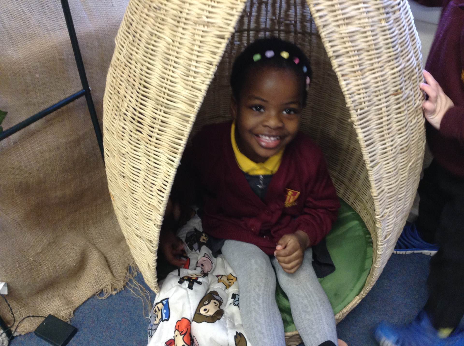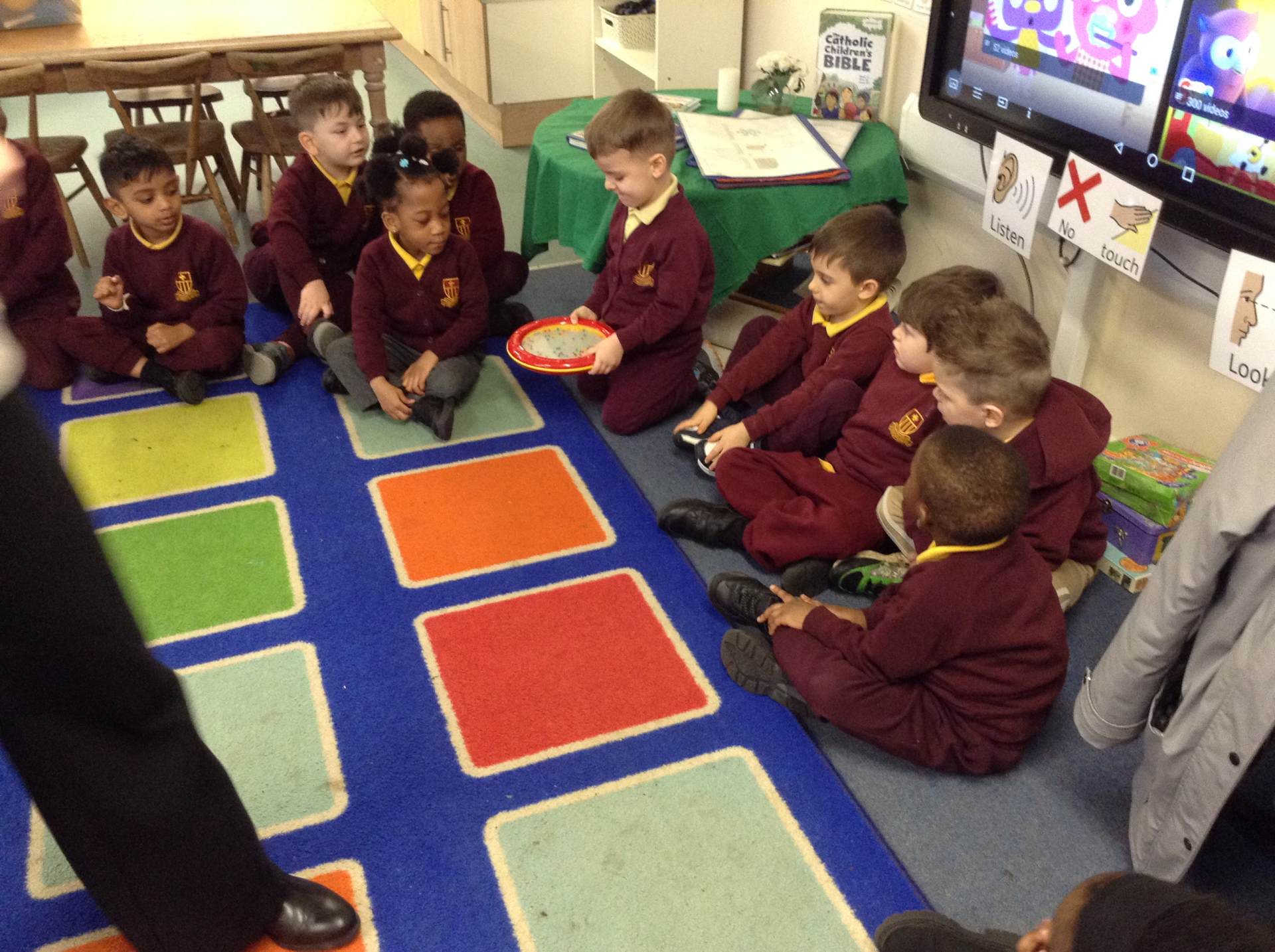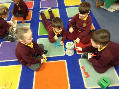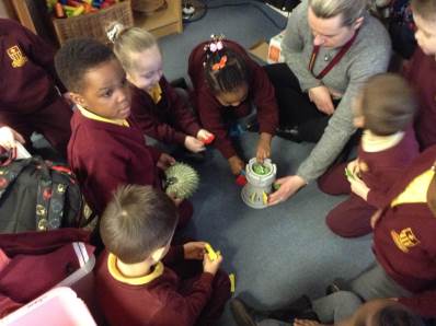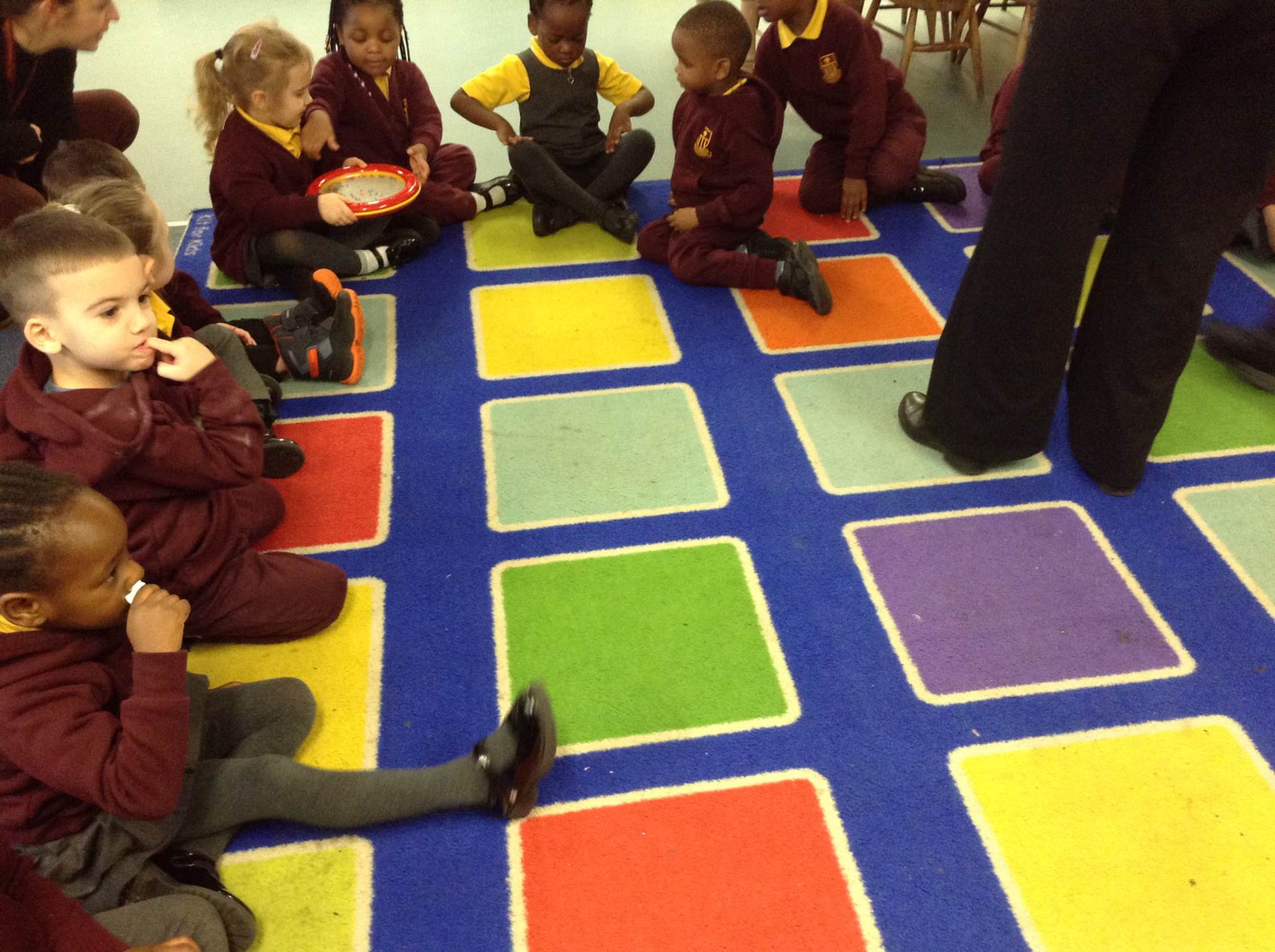 In phonics the children had a go at passing round an instrument without making a sound. They then had a go at playing an instrument in a beat alongside a song.