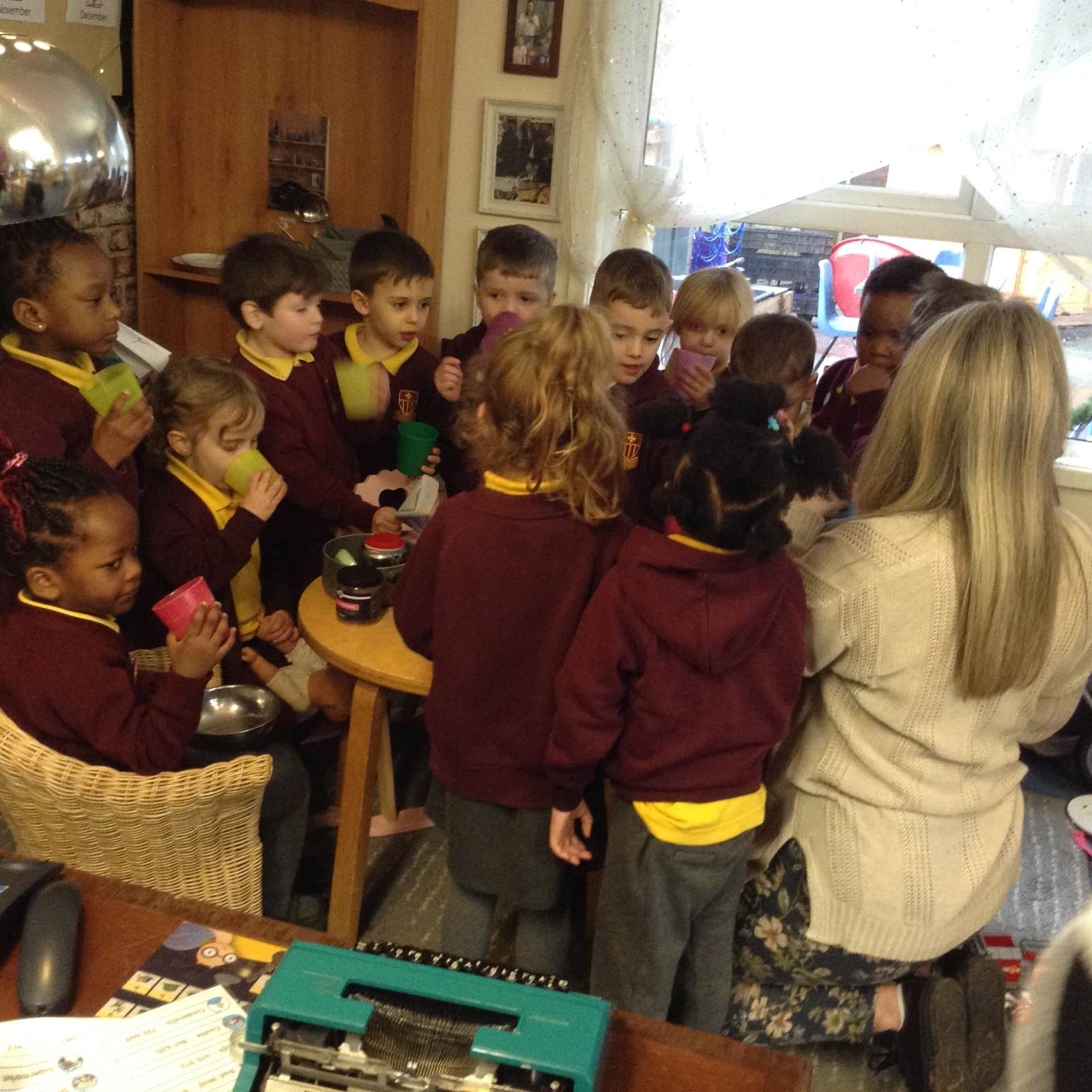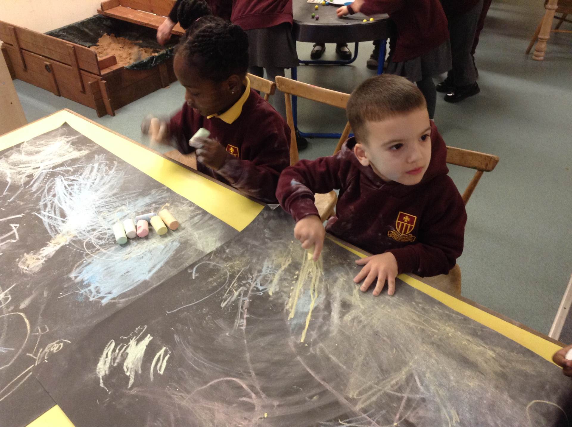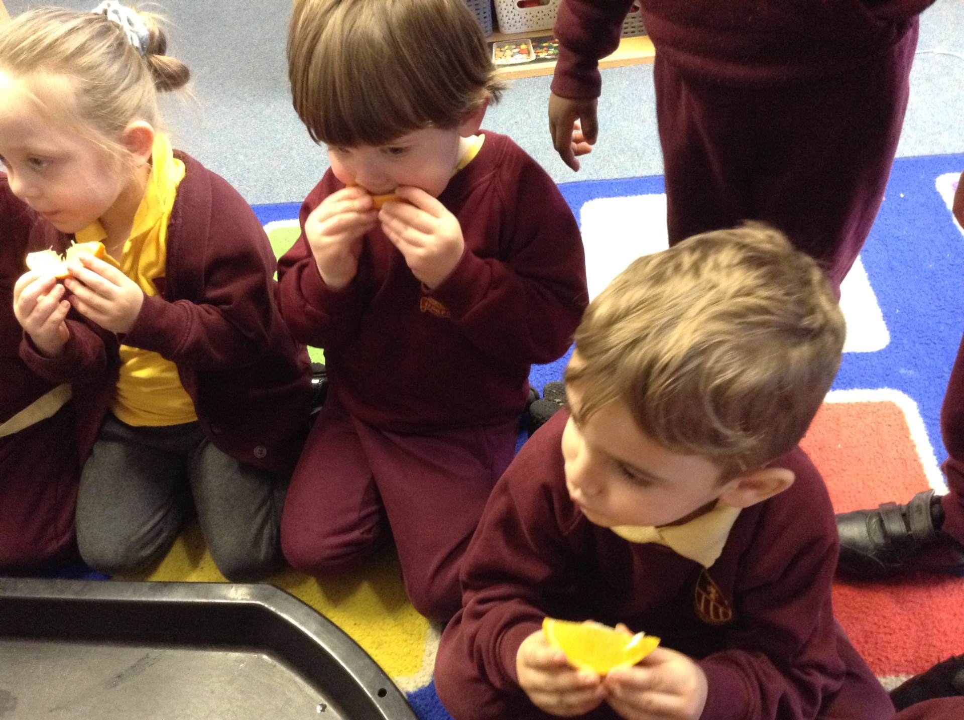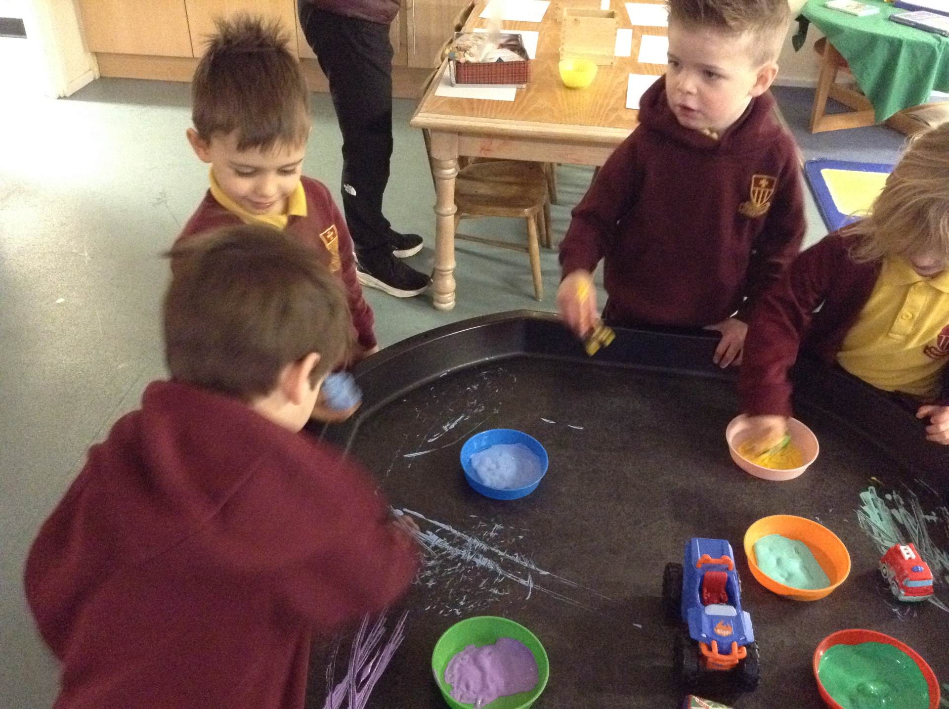 In phonics the children had a go at passing round an instrument without making a sound. They then had a go at playing an instrument in a beat alongside a song.