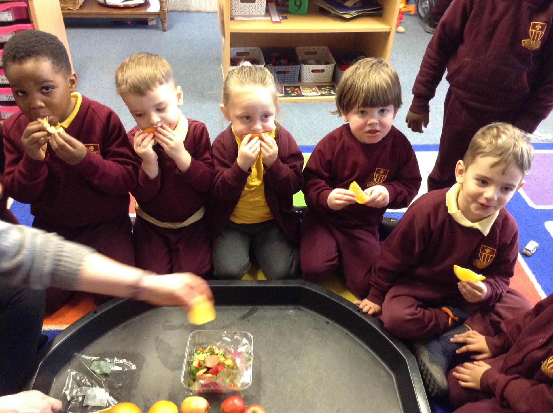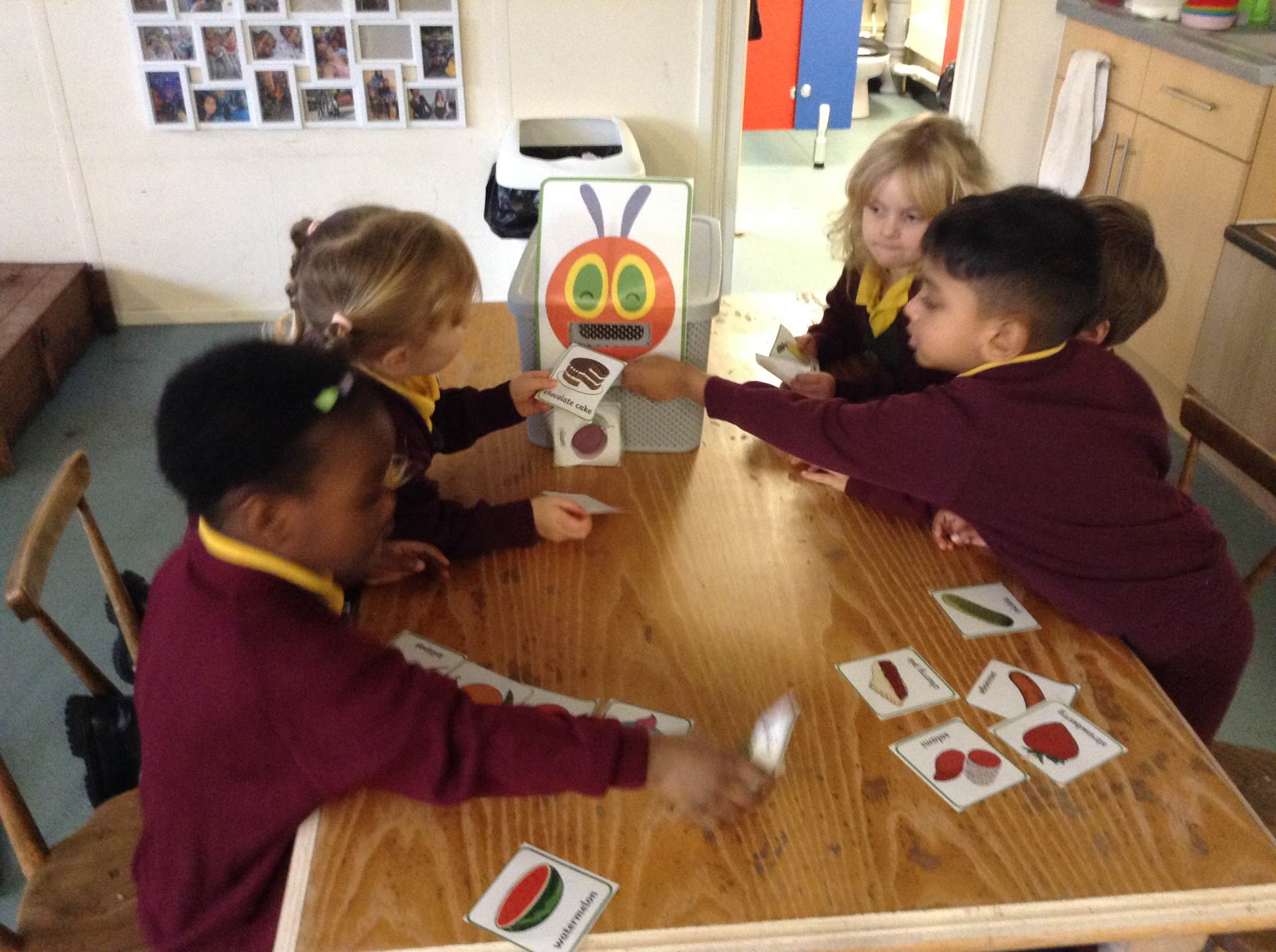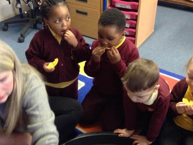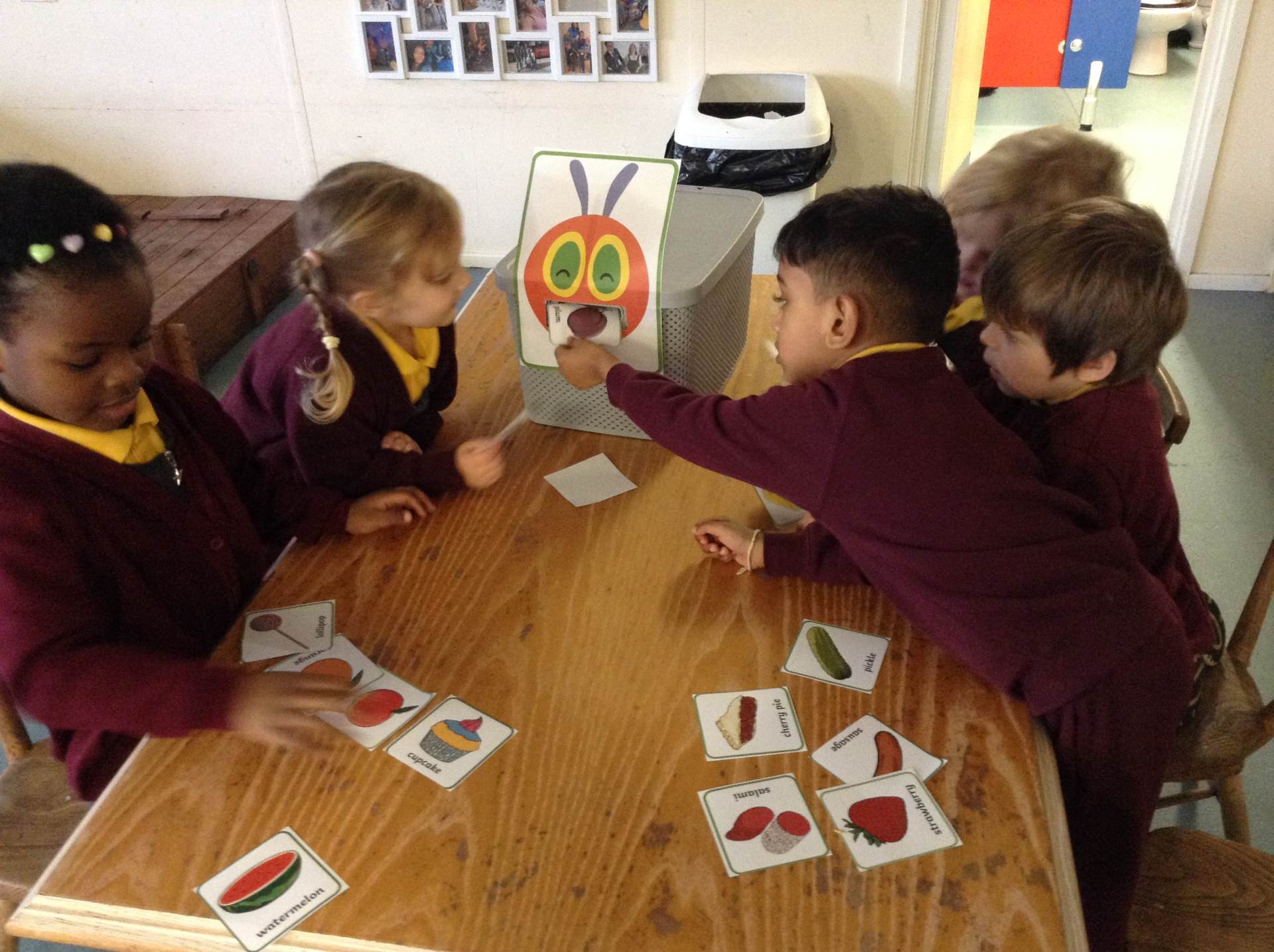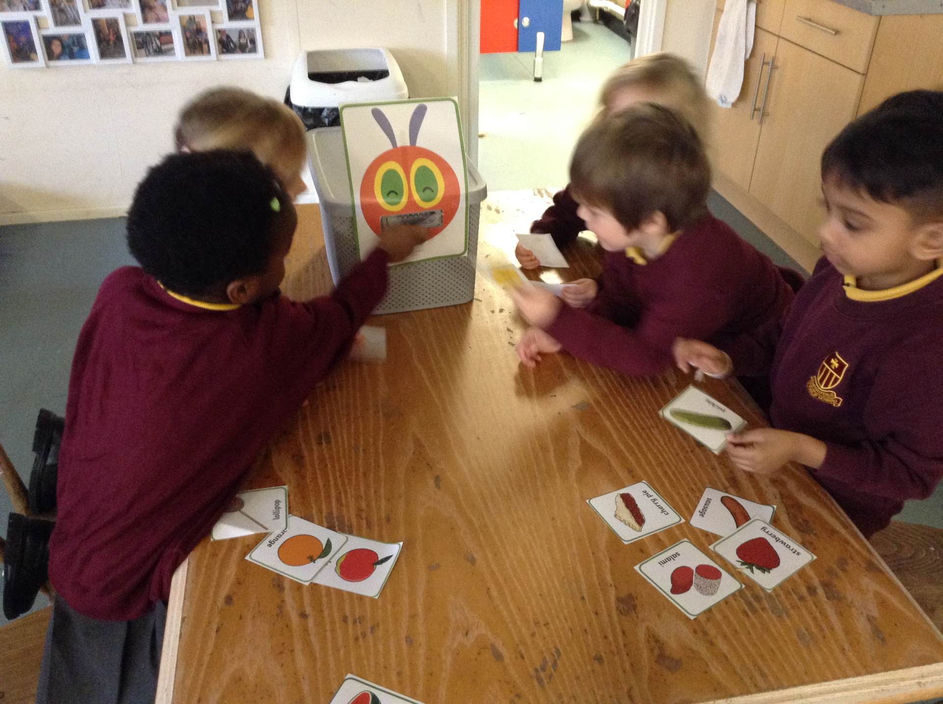 This week we read The very hungry caterpillar. We looked at the life cycle of a butterfly and sang a song to help us remember it. The children tried some healthy foods from the story and discussed which foods we unhealthy, they also talked about the foods whilst feeding it to the caterpillar.