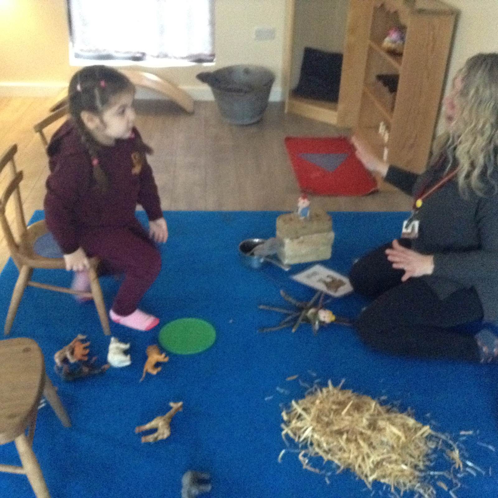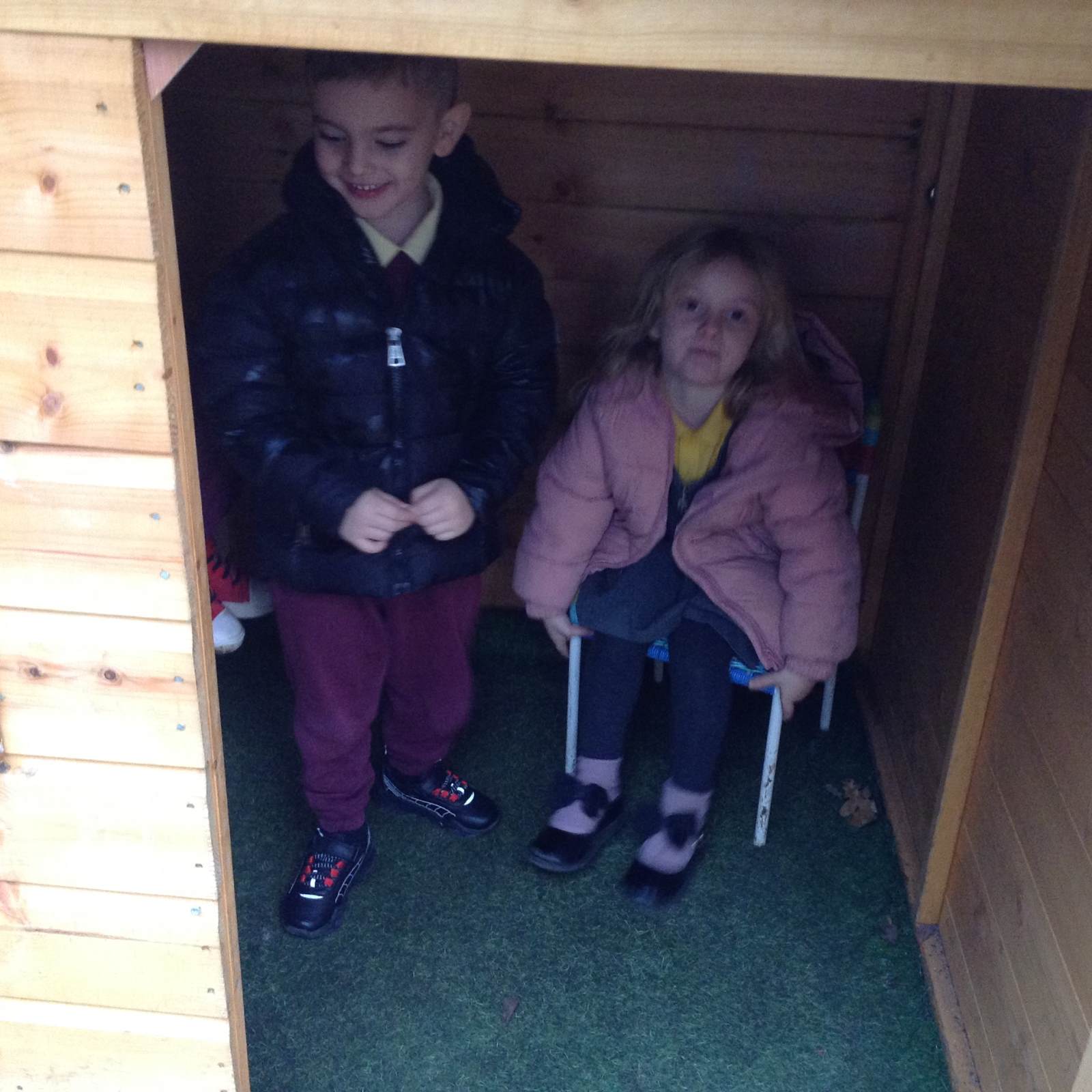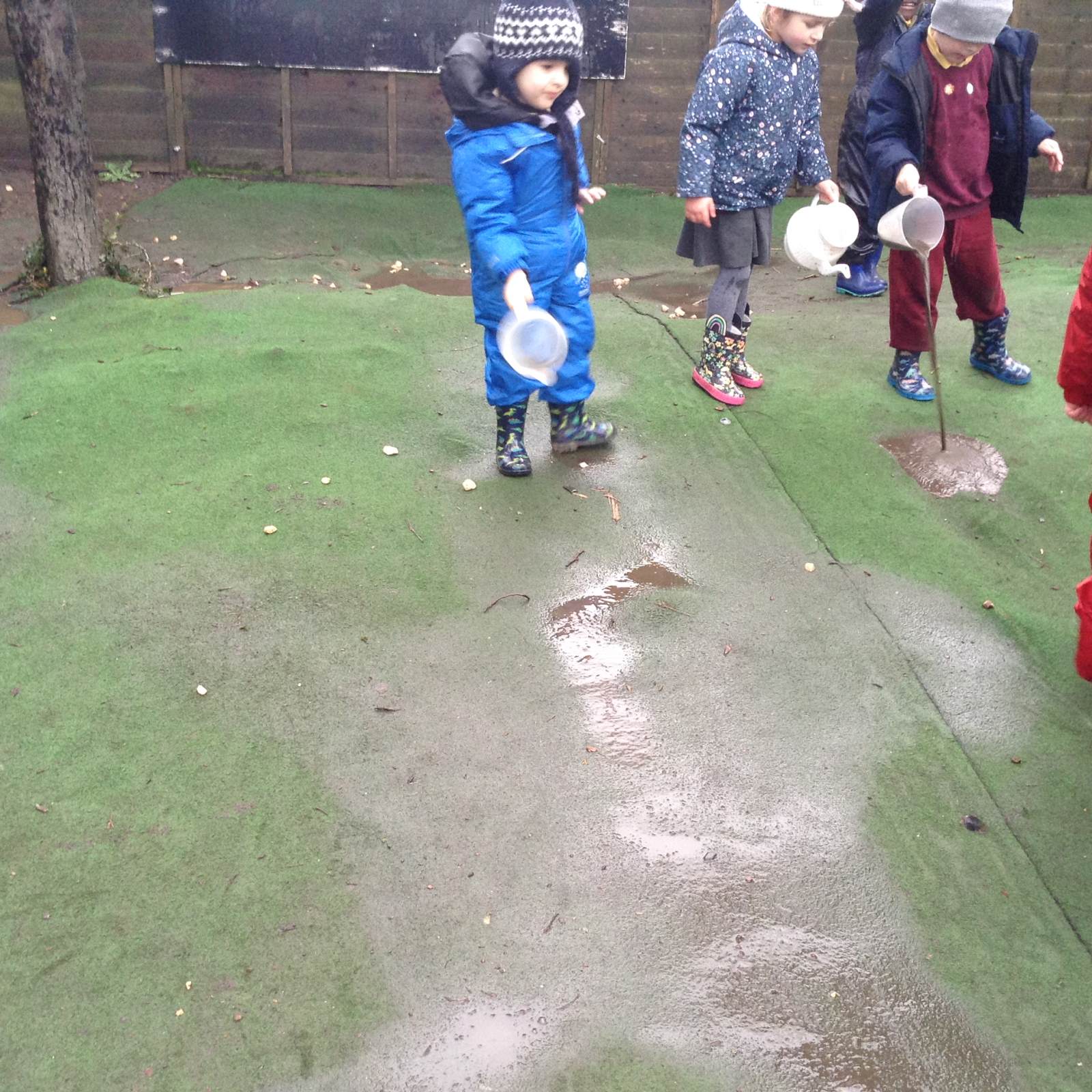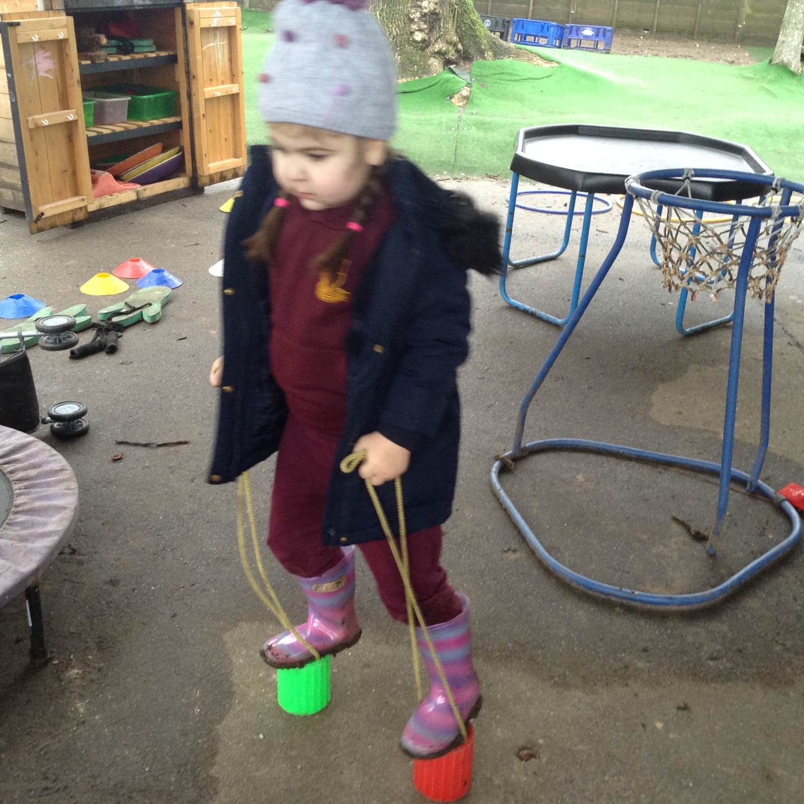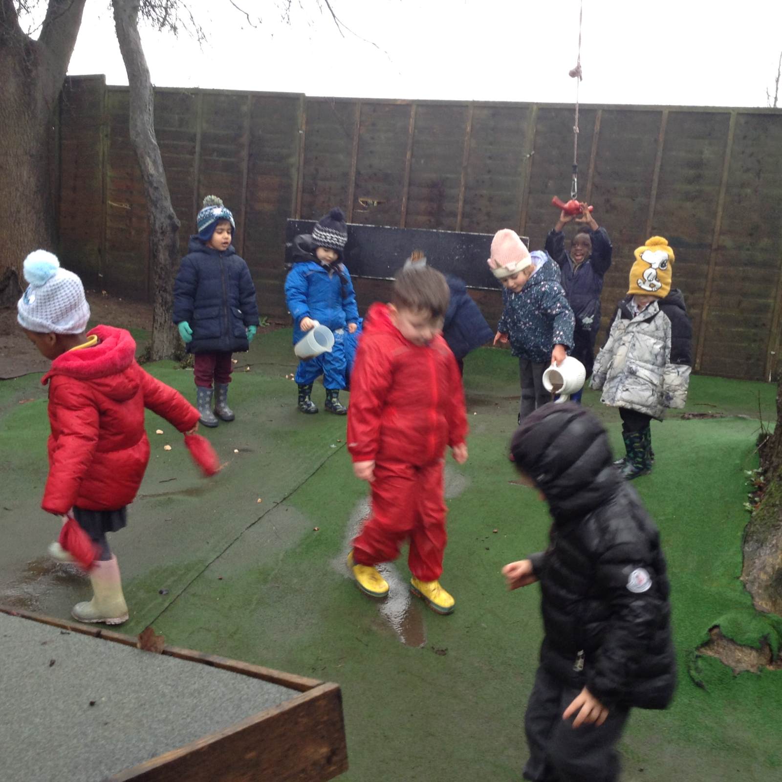 In Forest school, we spent the time exploring, encouraging the children to try different routes, climb over trees and jump down from logs and stumps. It was very messy but very fun!