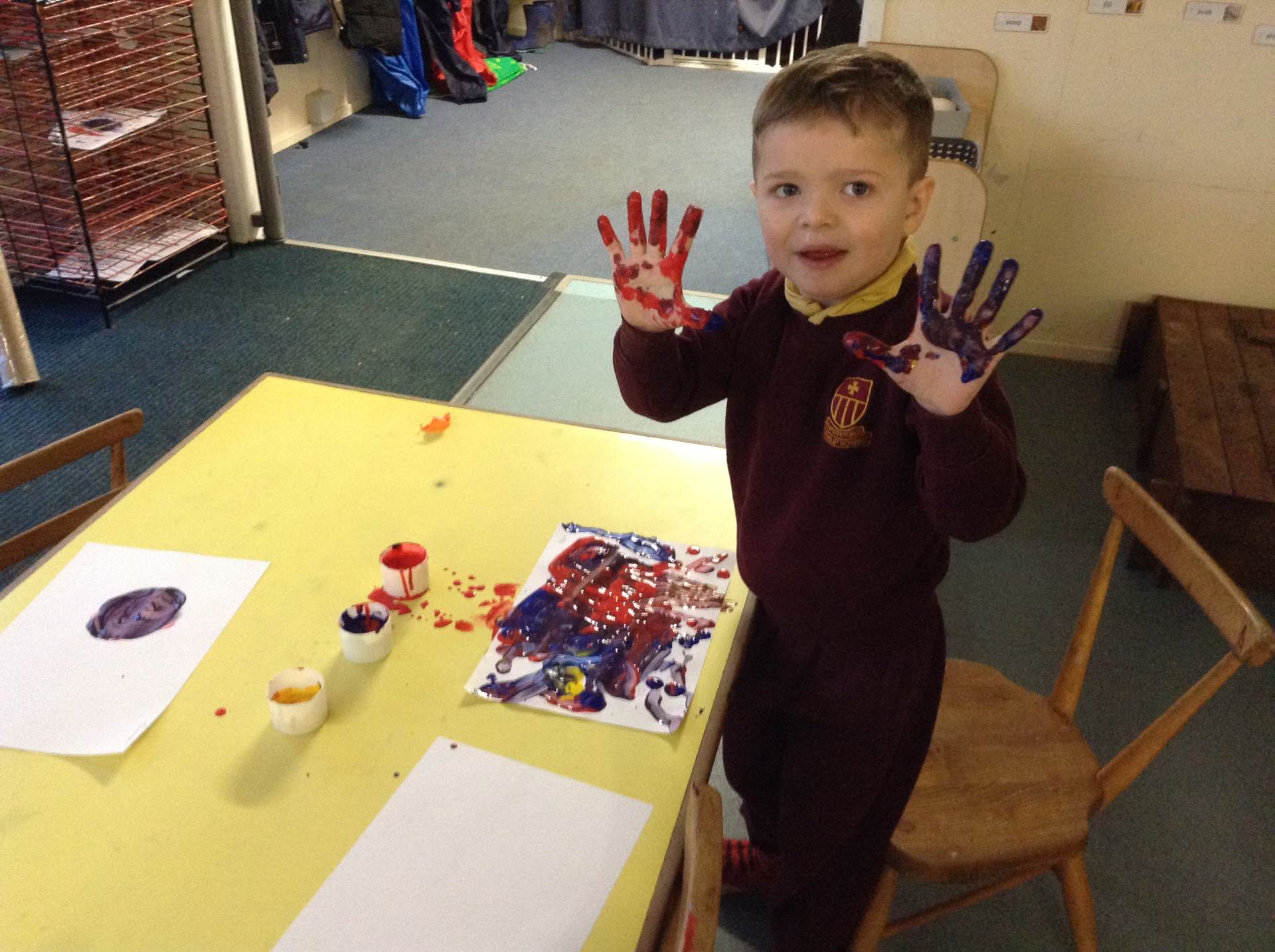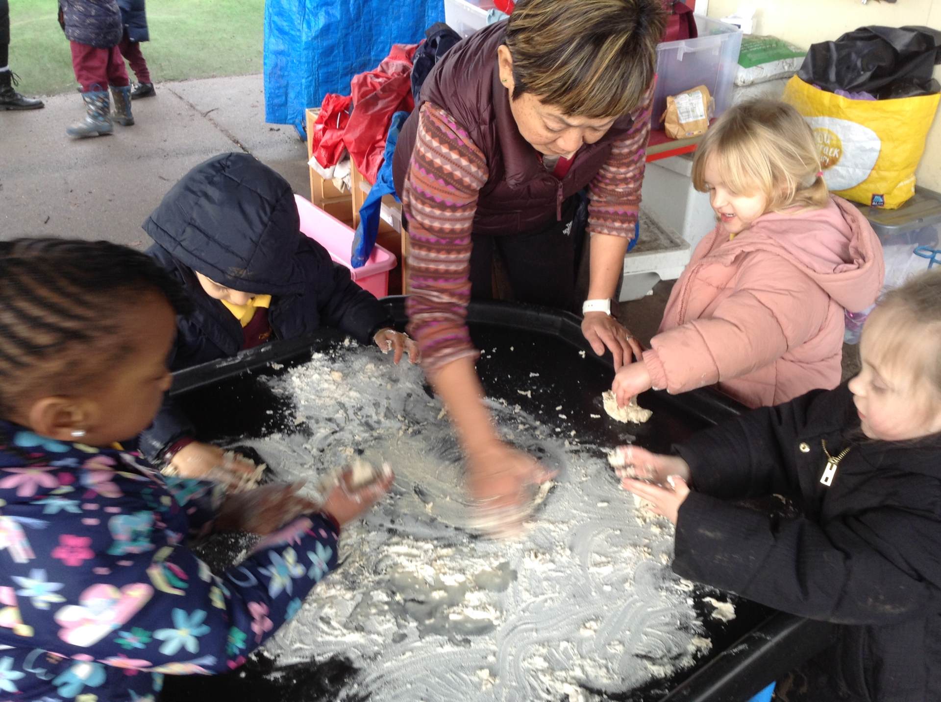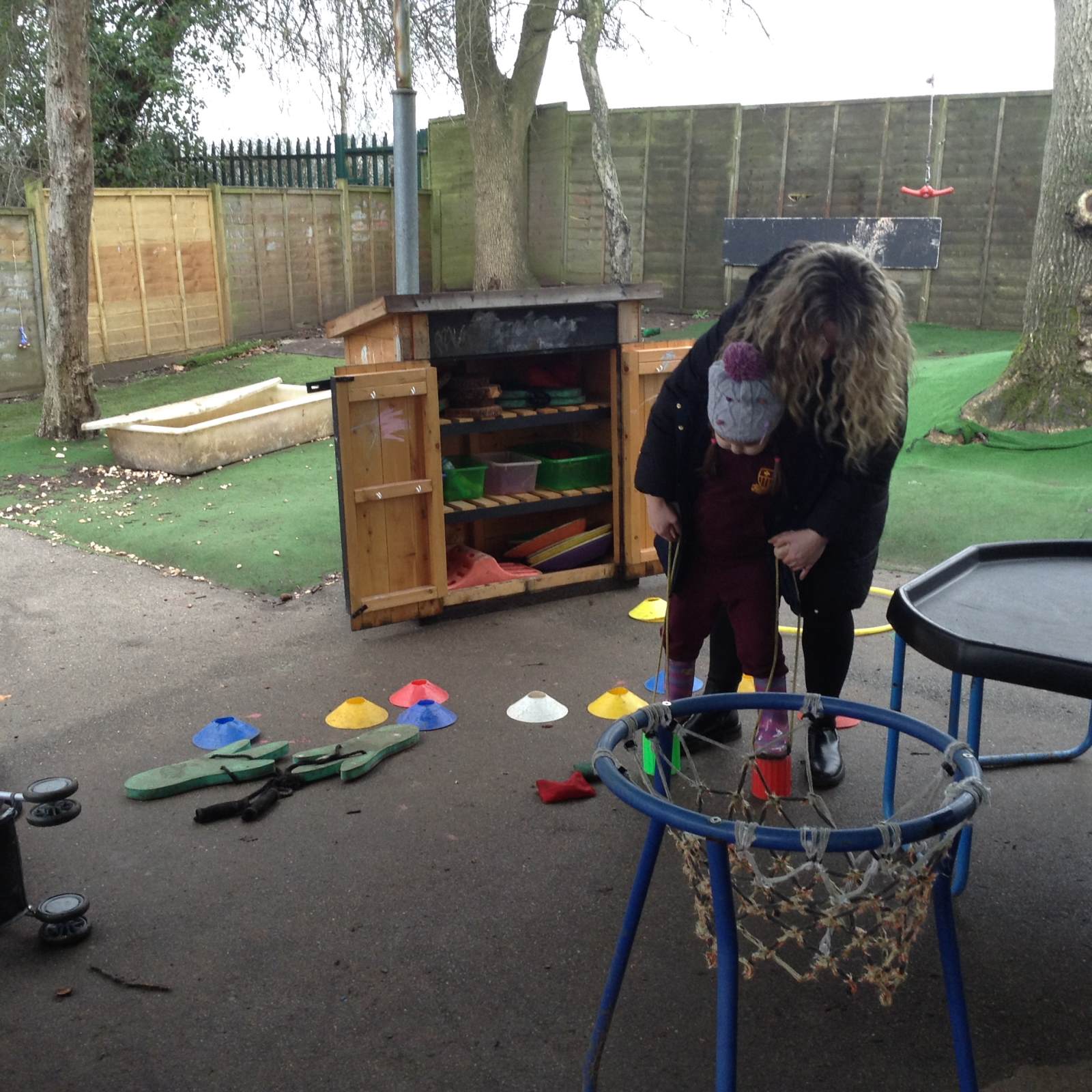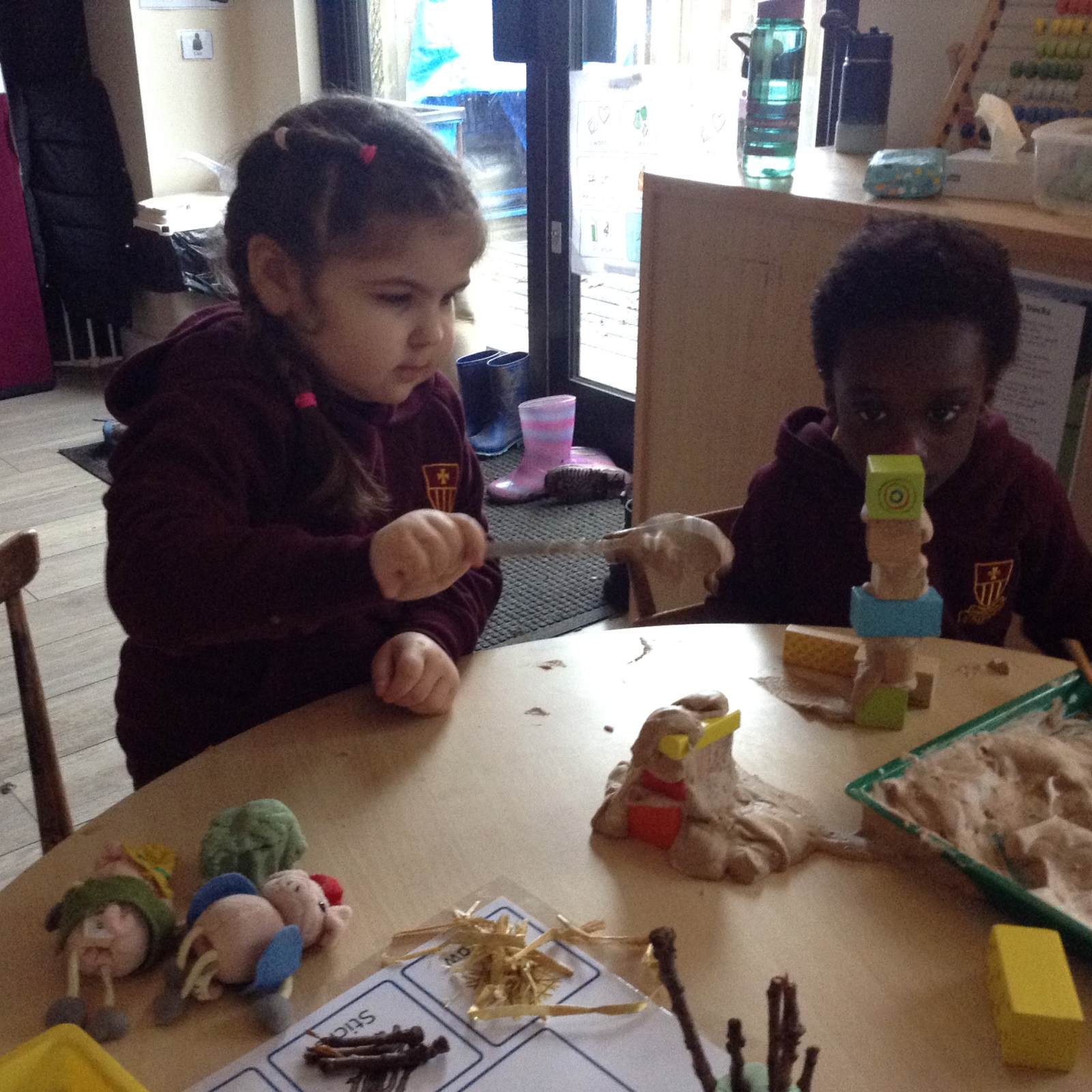 In Forest school, we spent the time exploring, encouraging the children to try different routes, climb over trees and jump down from logs and stumps. It was very messy but very fun!