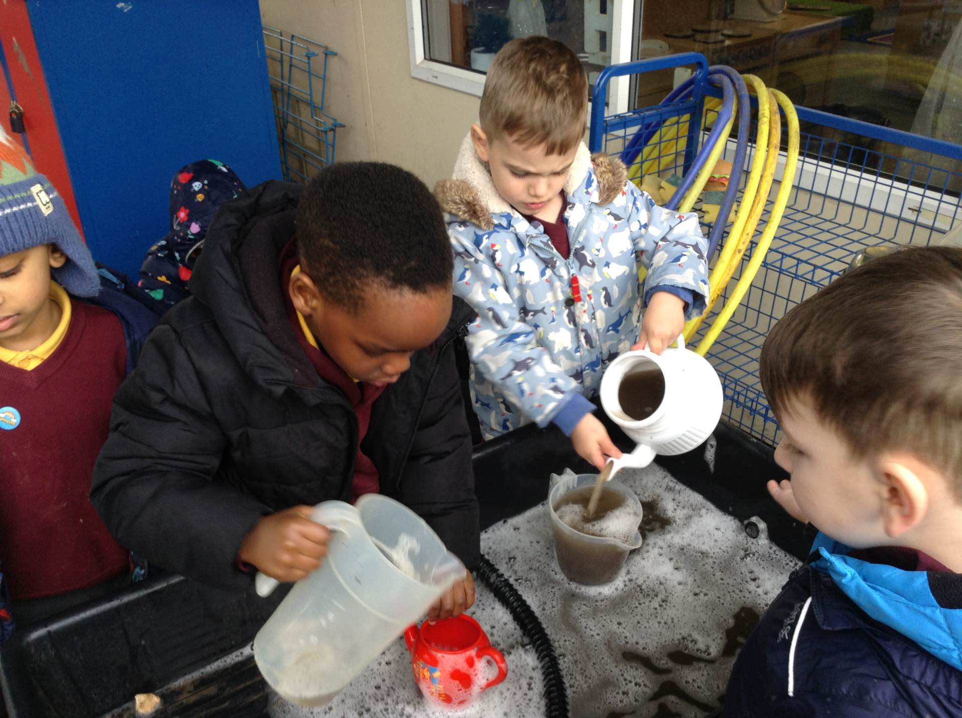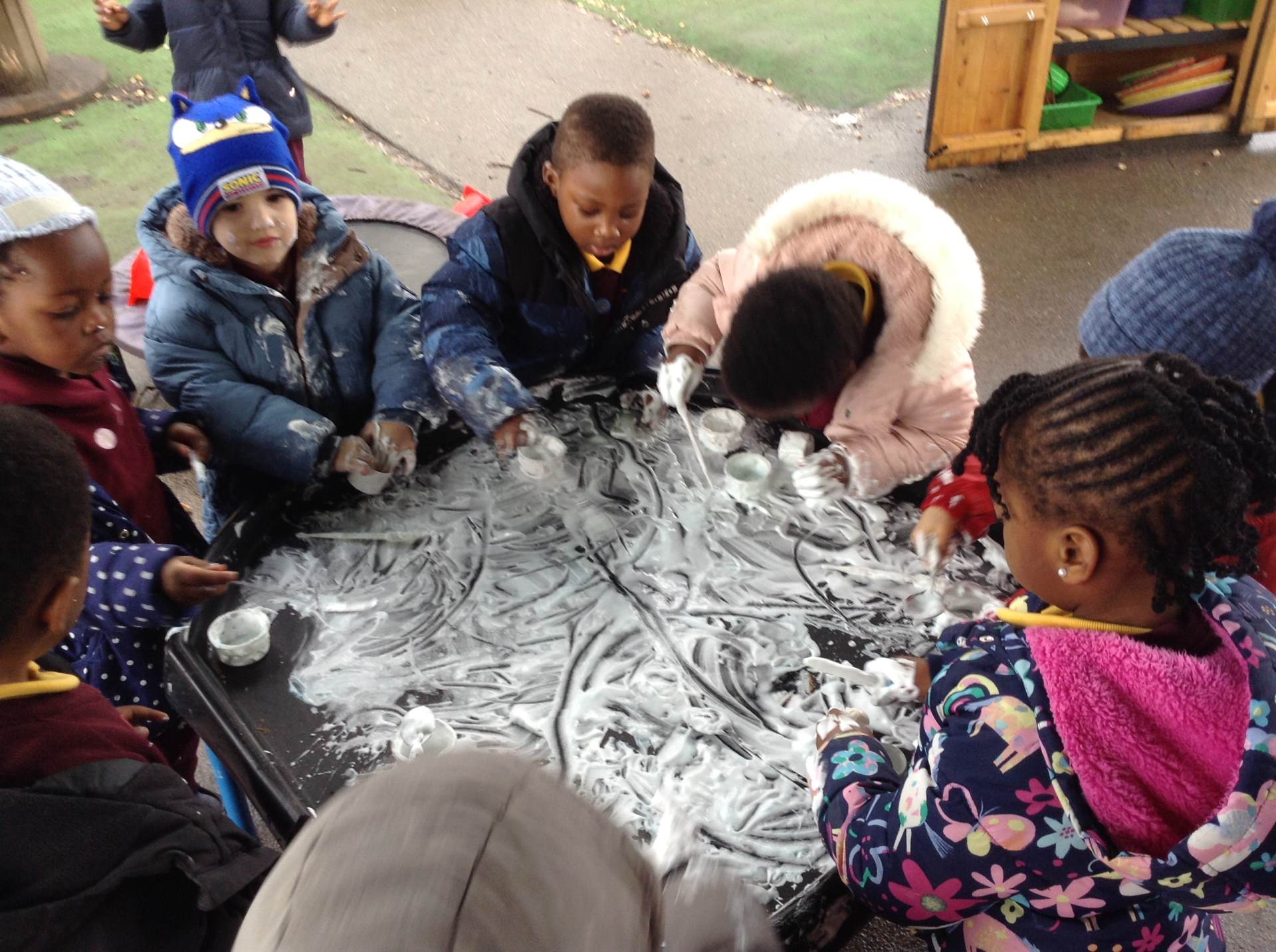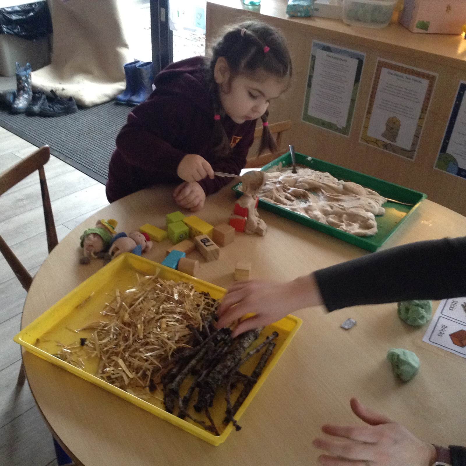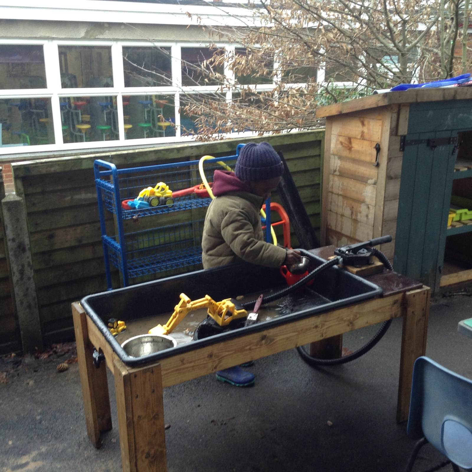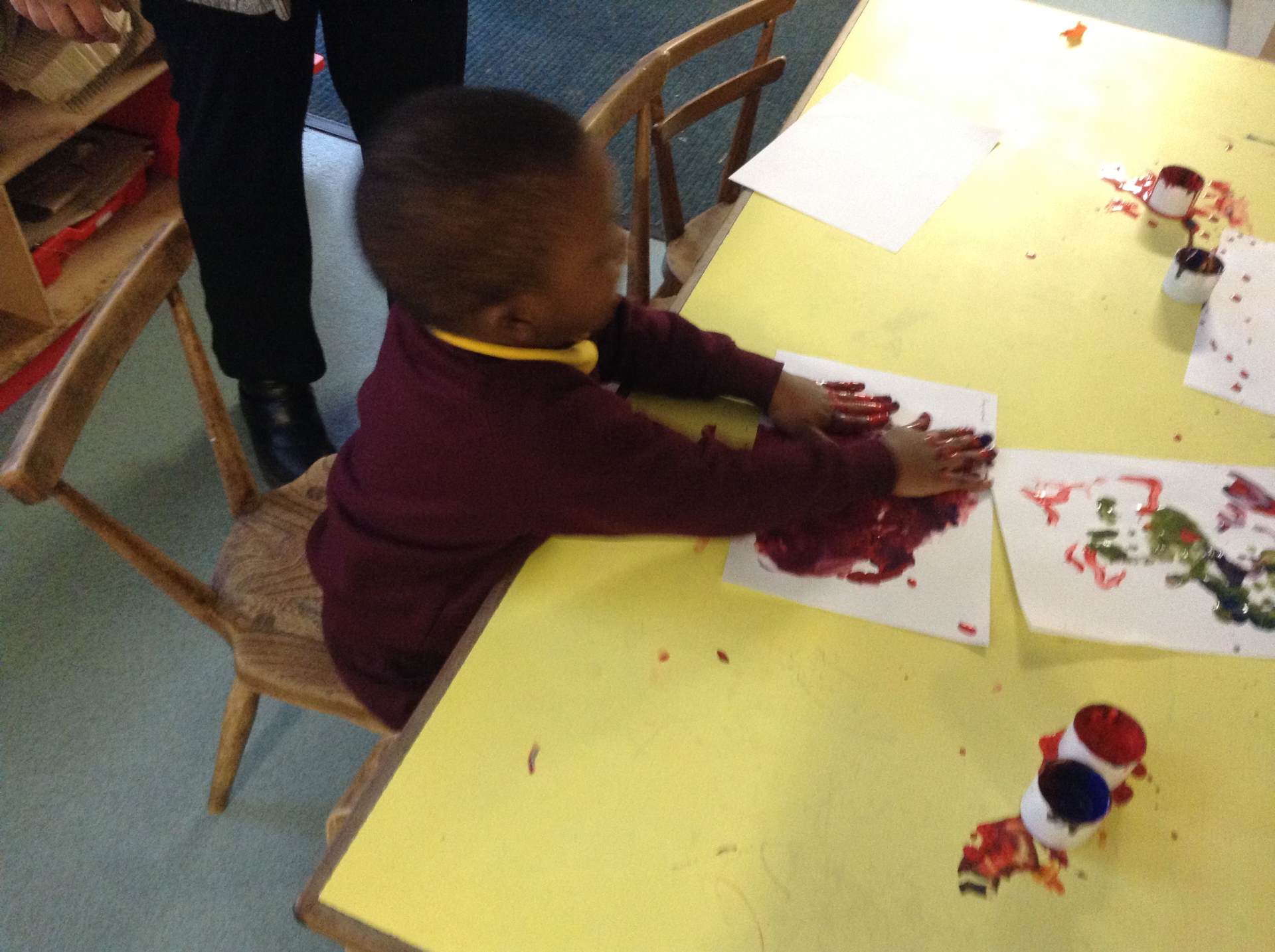In Forest school, we spent the time exploring, encouraging the children to try different routes, climb over trees and jump down from logs and stumps. It was very messy but very fun!