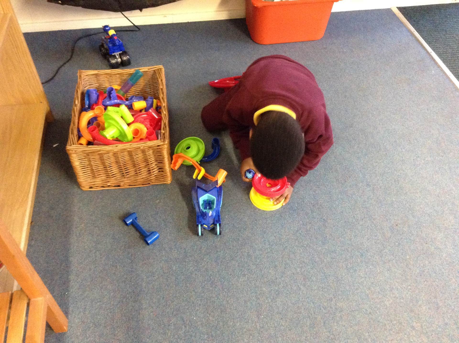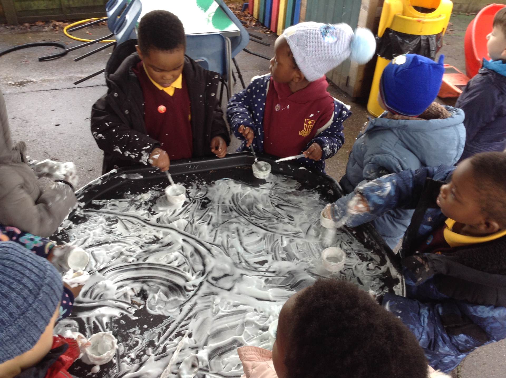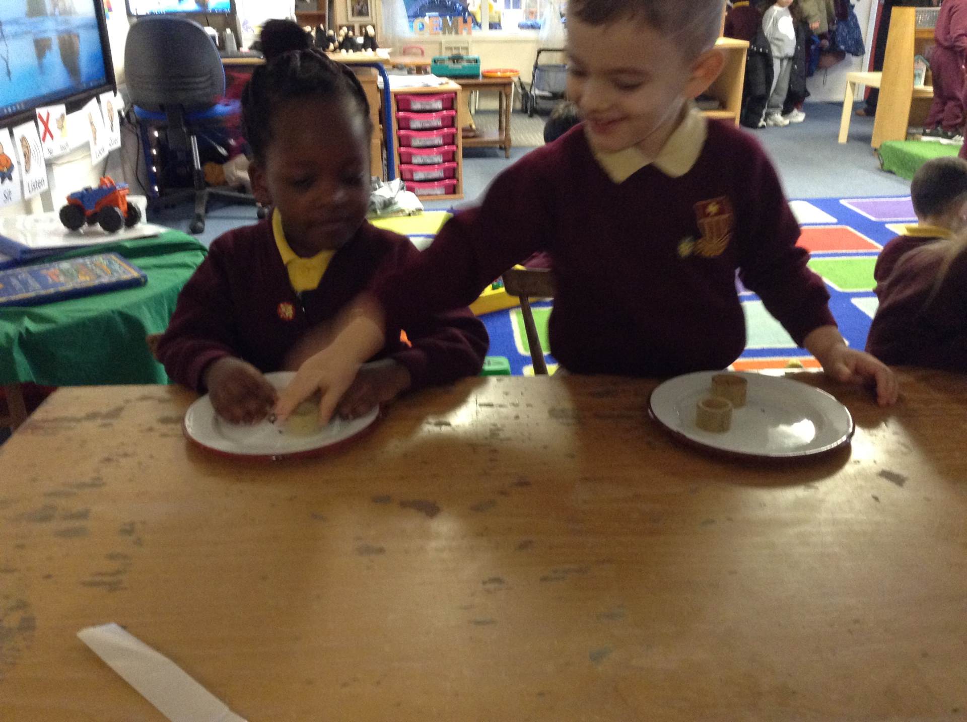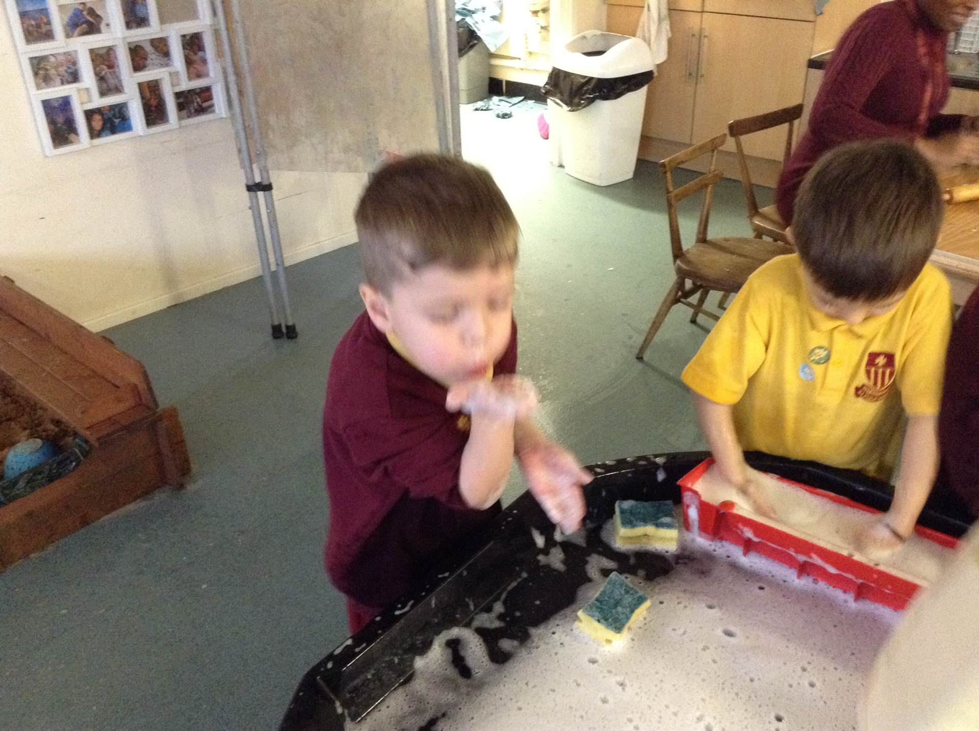 In Forest school, we spent the time exploring, encouraging the children to try different routes, climb over trees and jump down from logs and stumps. It was very messy but very fun!