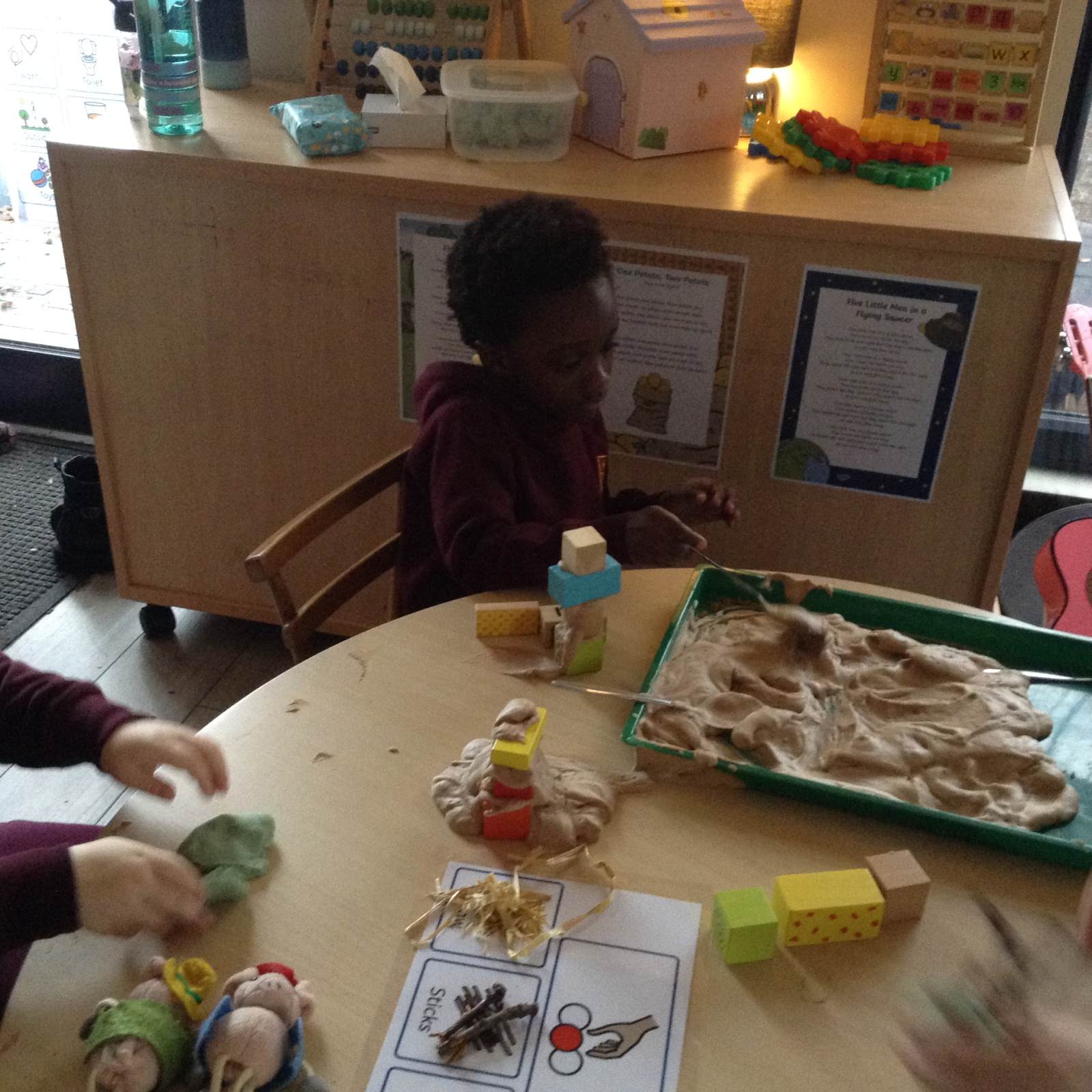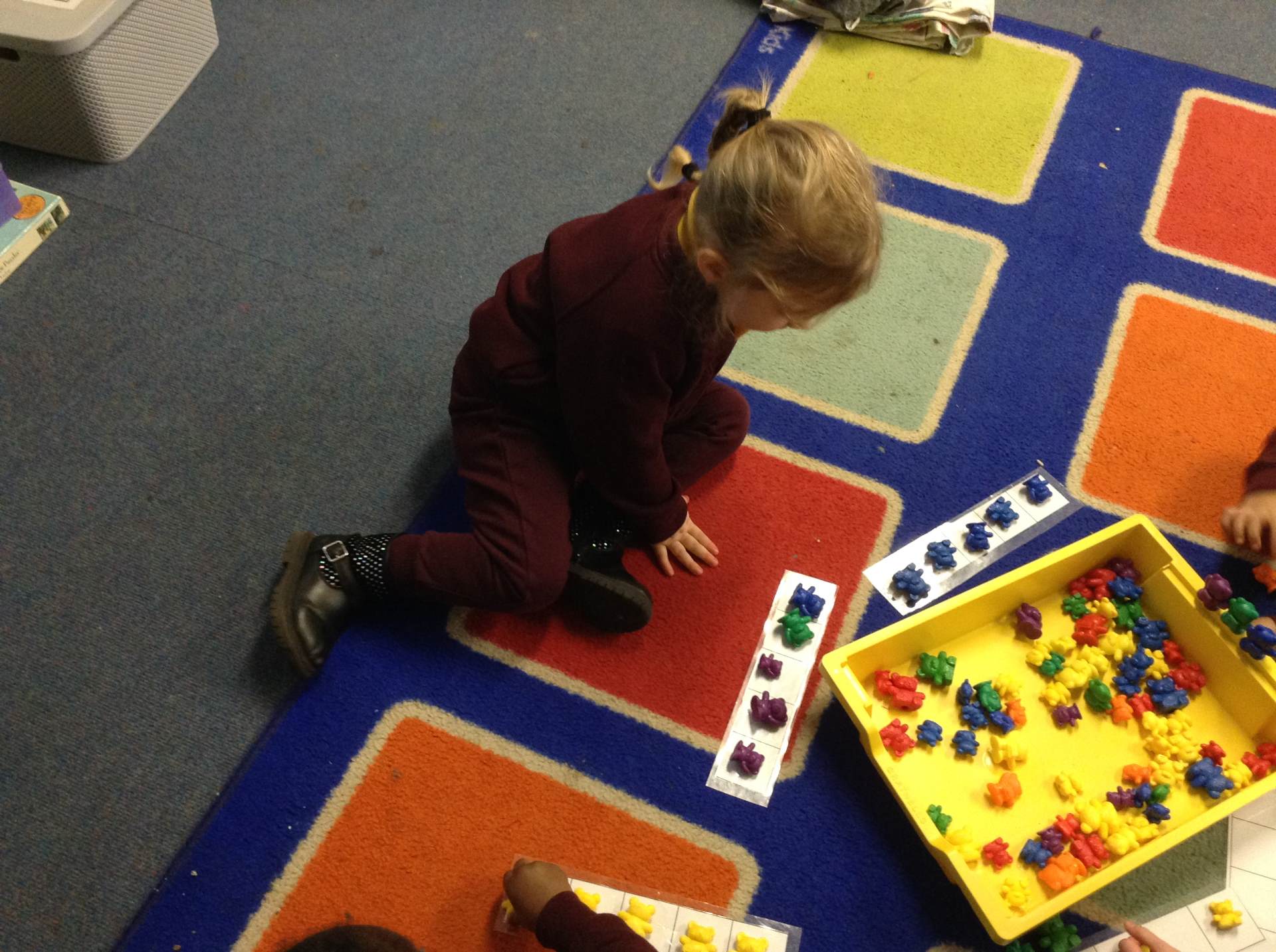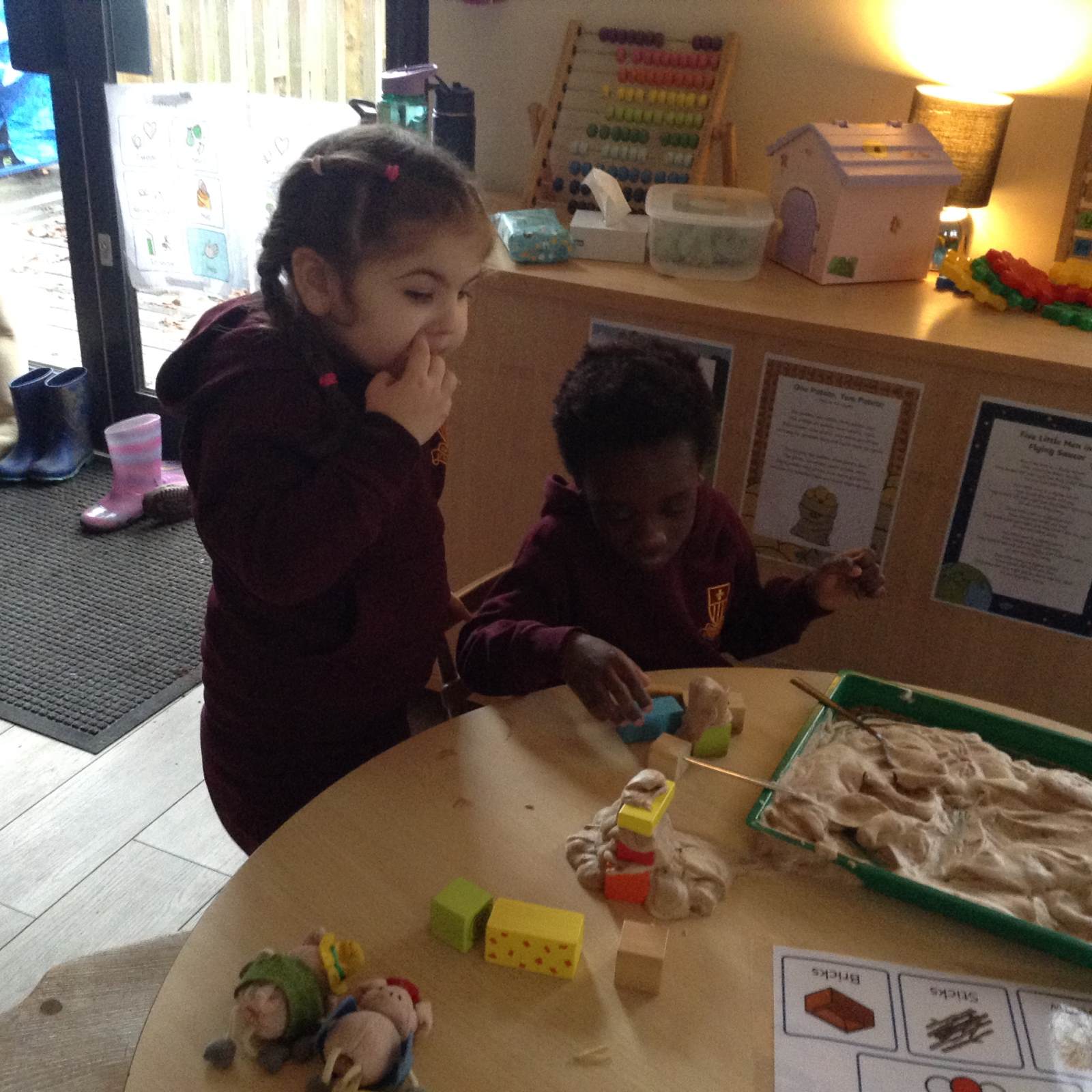 In maths we looked at the composition of number 5. What different ways can we create 5, what would it look like if we shared 5? The children had a go at doing this practically in the environment.