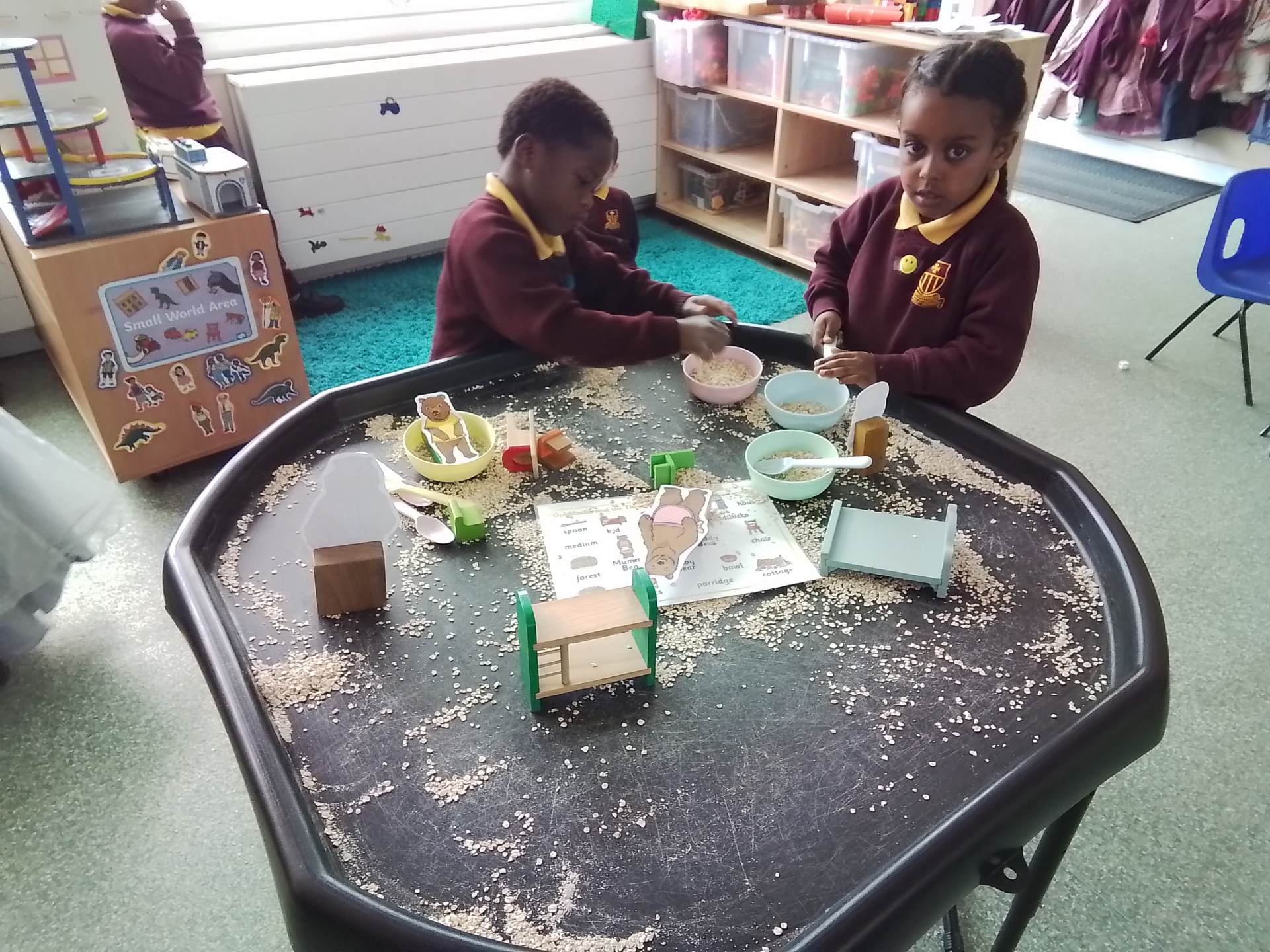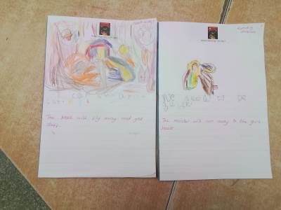 Goldilocks and the Three Bears becomes our Drawing Club book for this week. We are developing our sentence writing and attempting to use digraph sounds in our words.